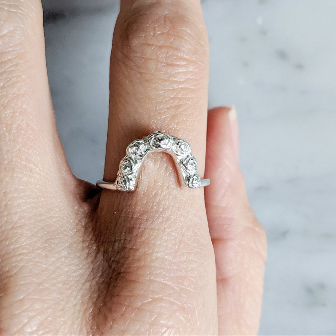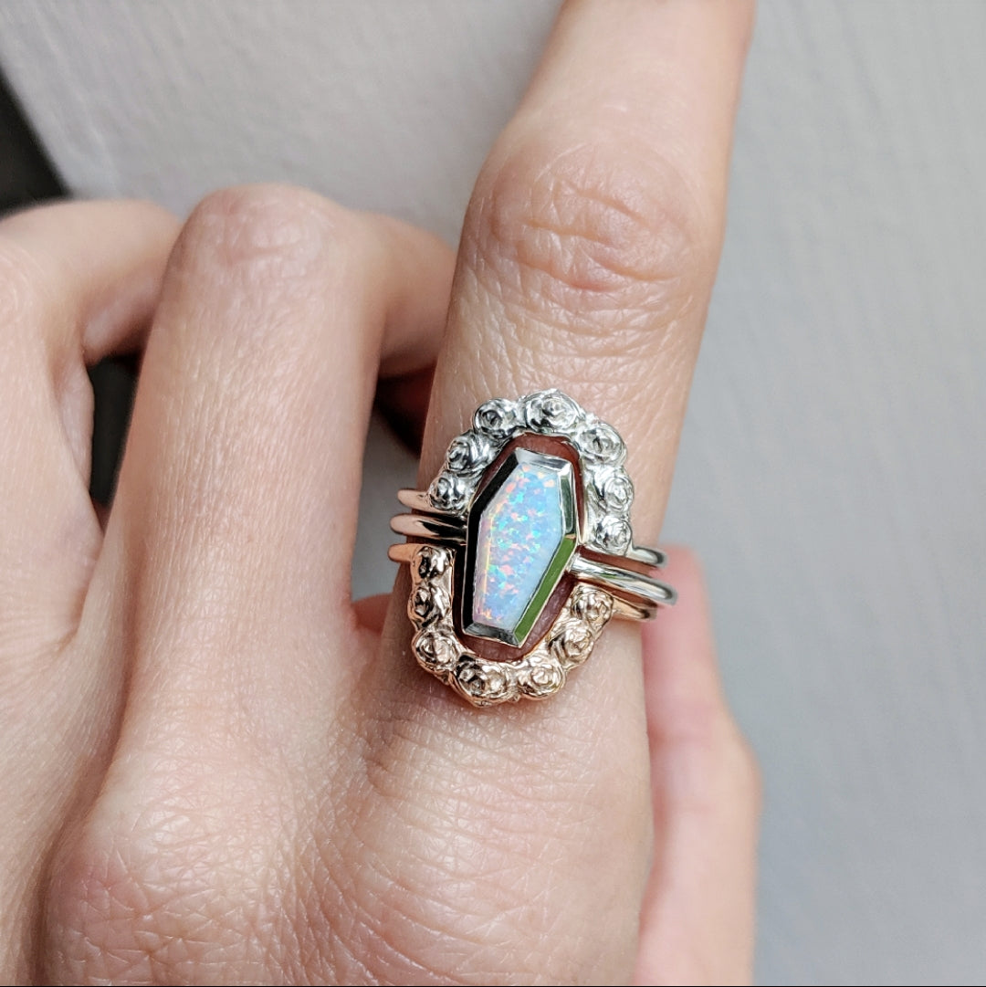 Hand cast cabbage rose ring that fits perfectly atop or below our Coffin Rings or looks beautiful on it's own.