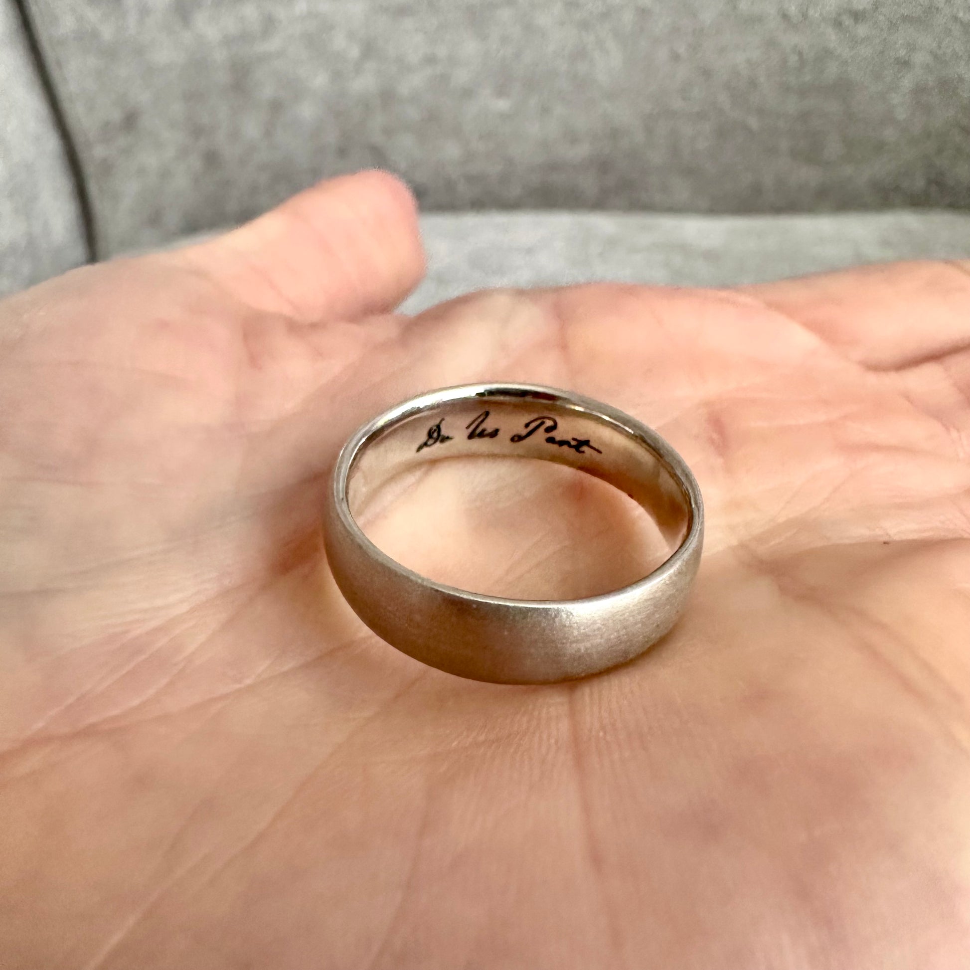 Sterling silver band that has the words "Til Death" engraved on the inside of the band.