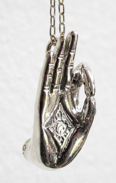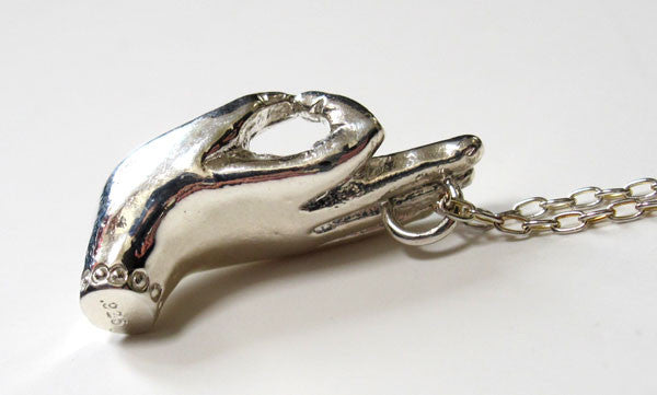 This pendant is hand cast in solid sterling silver standing about 1" tall.