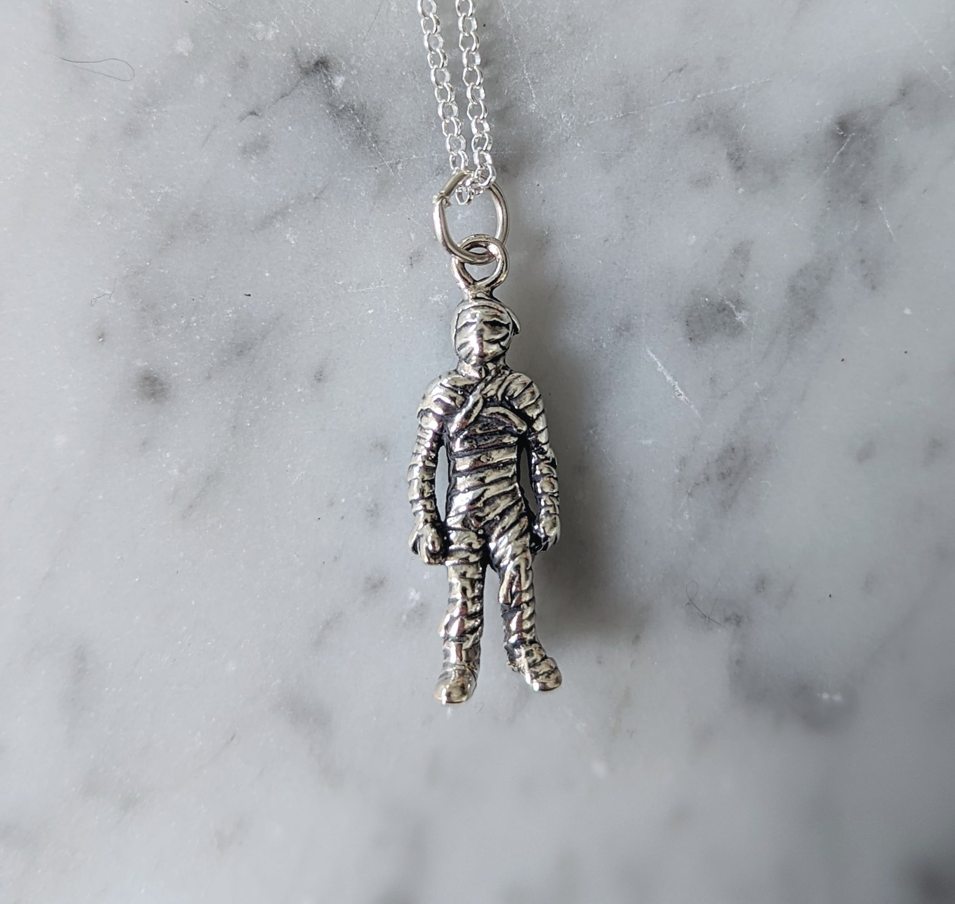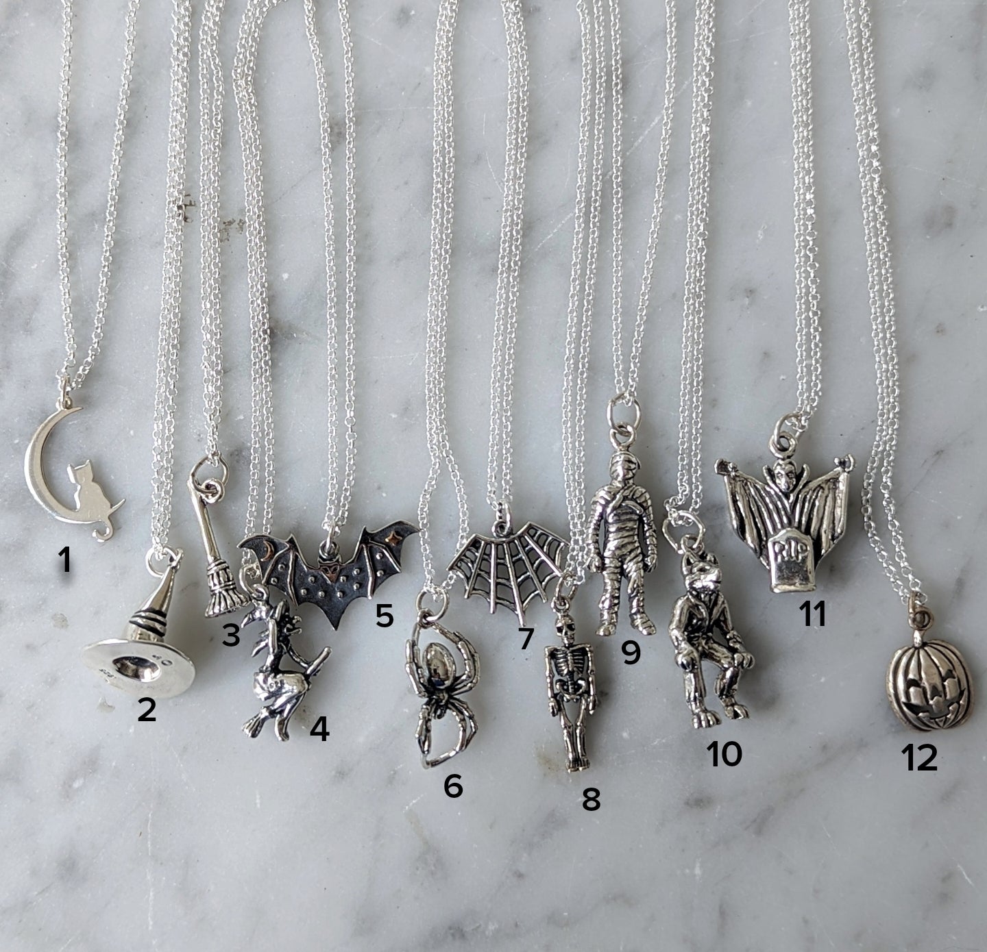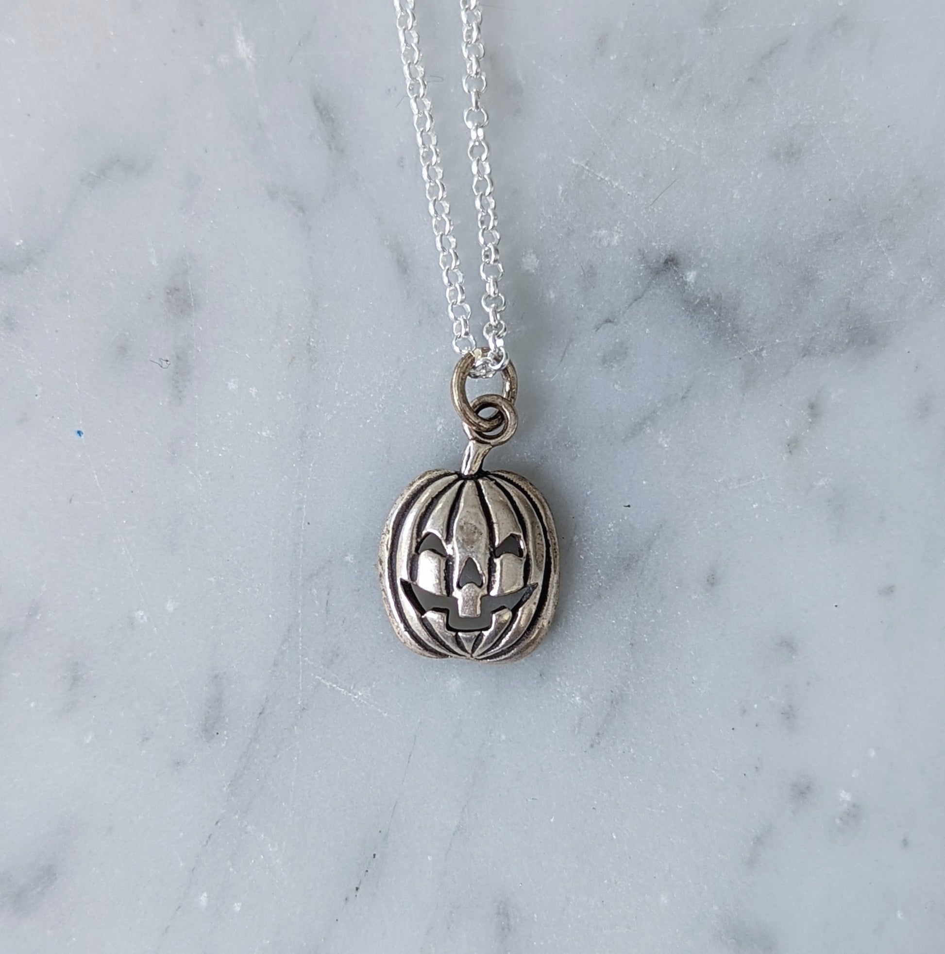 Your choice of sterling silver Halloween charm hanging from a 17" sterling silver chain.