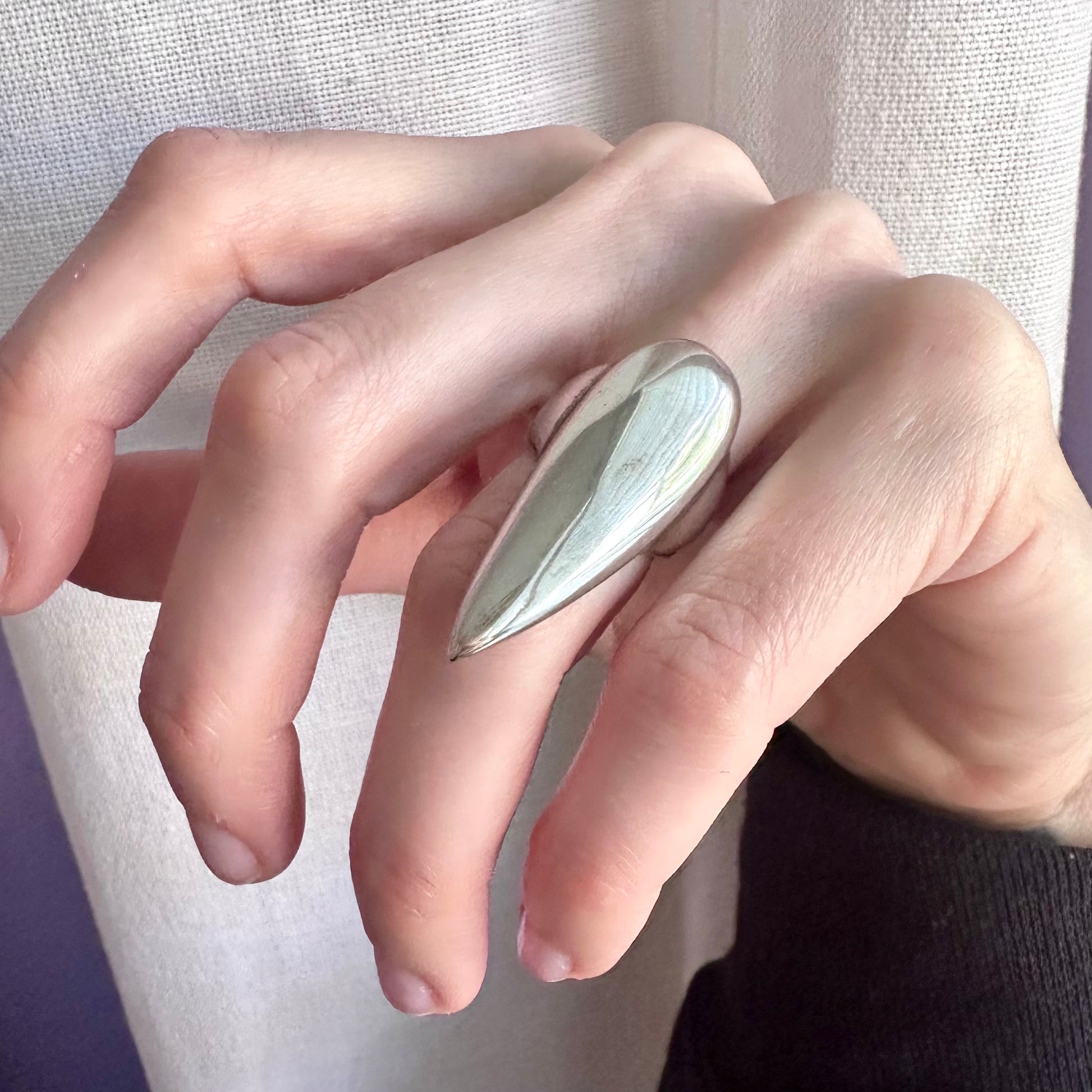 Sterling silver beautiful statement 1.5" long talon dome ring.
