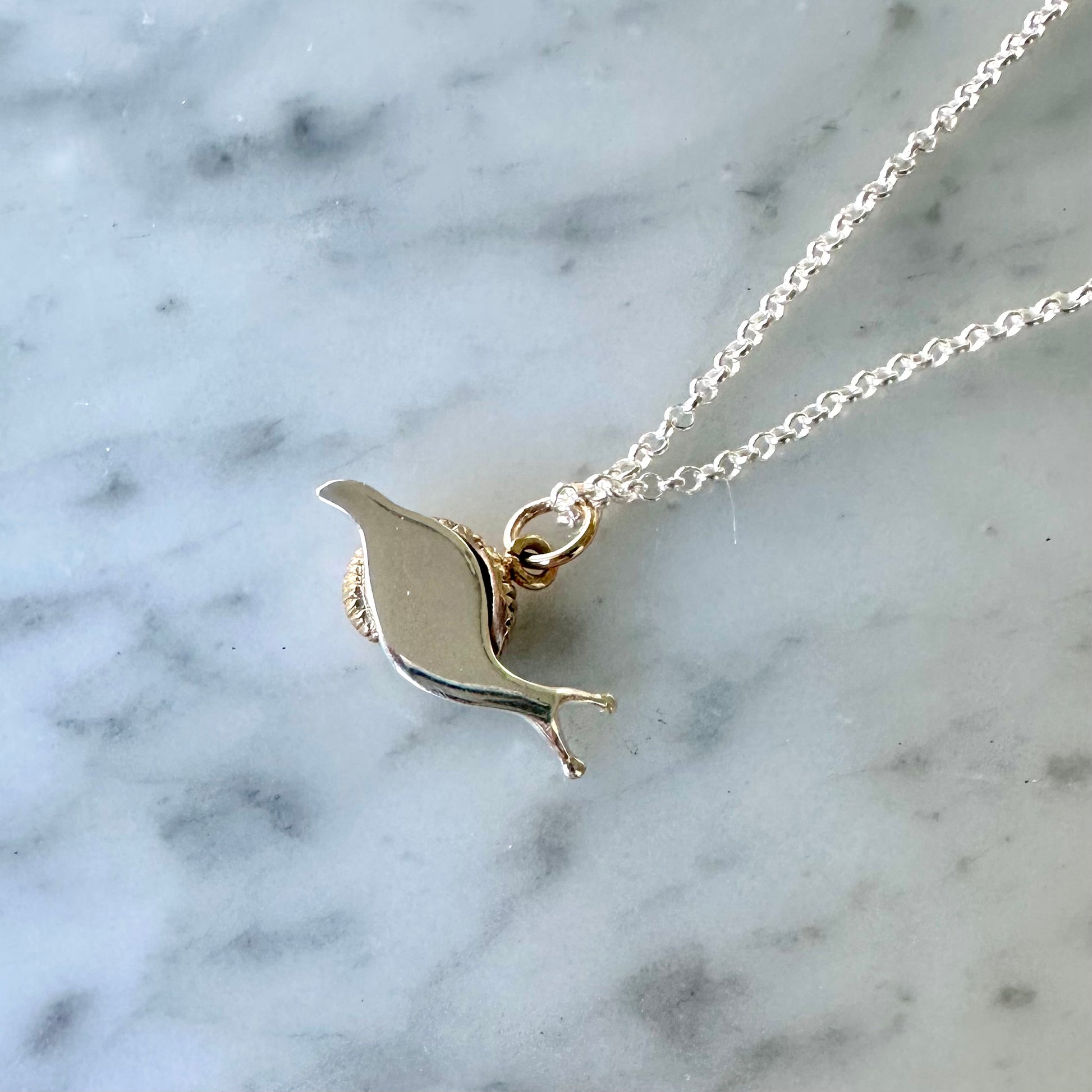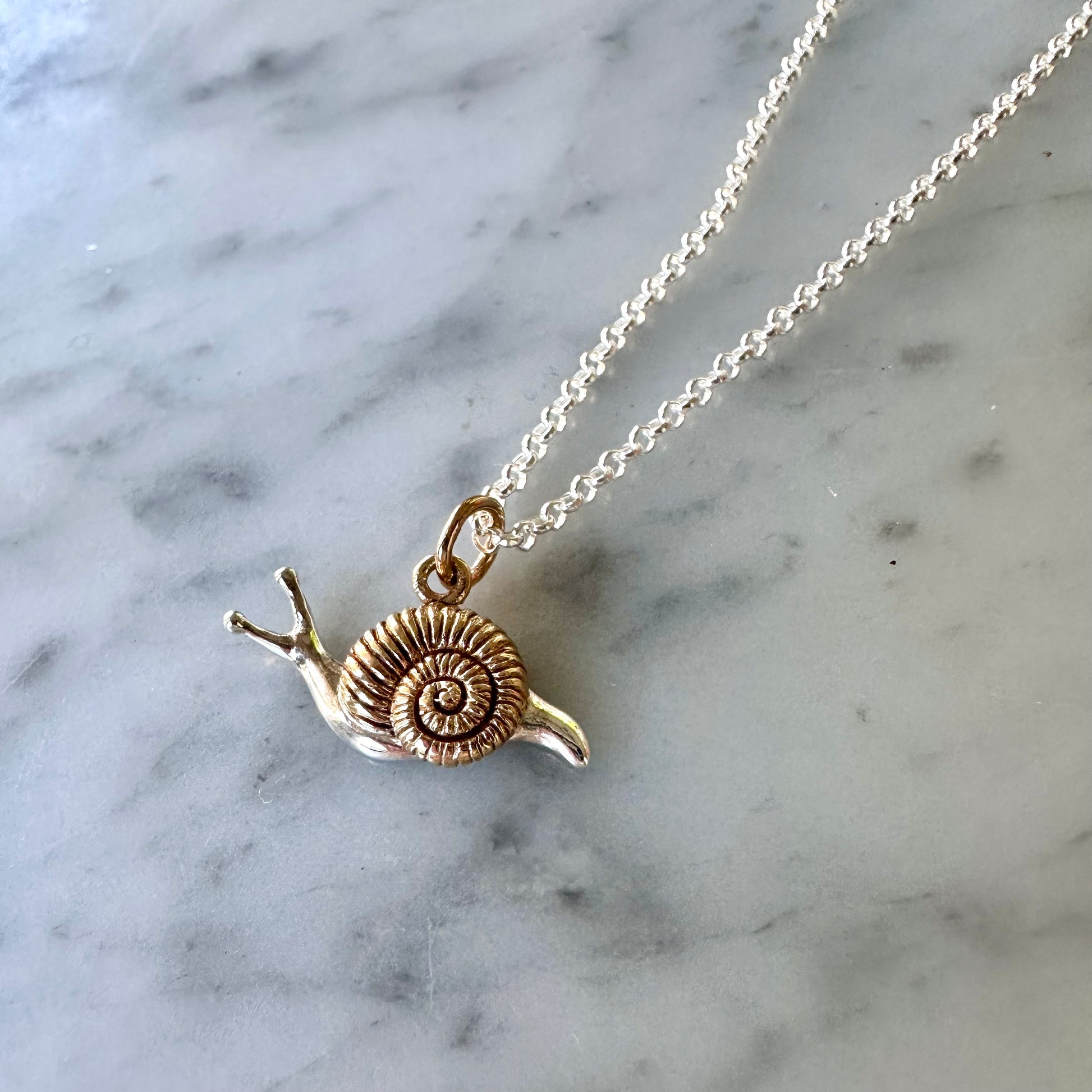 The cutest little sterling silver and bronze snail hanging from a sterling silver chain.