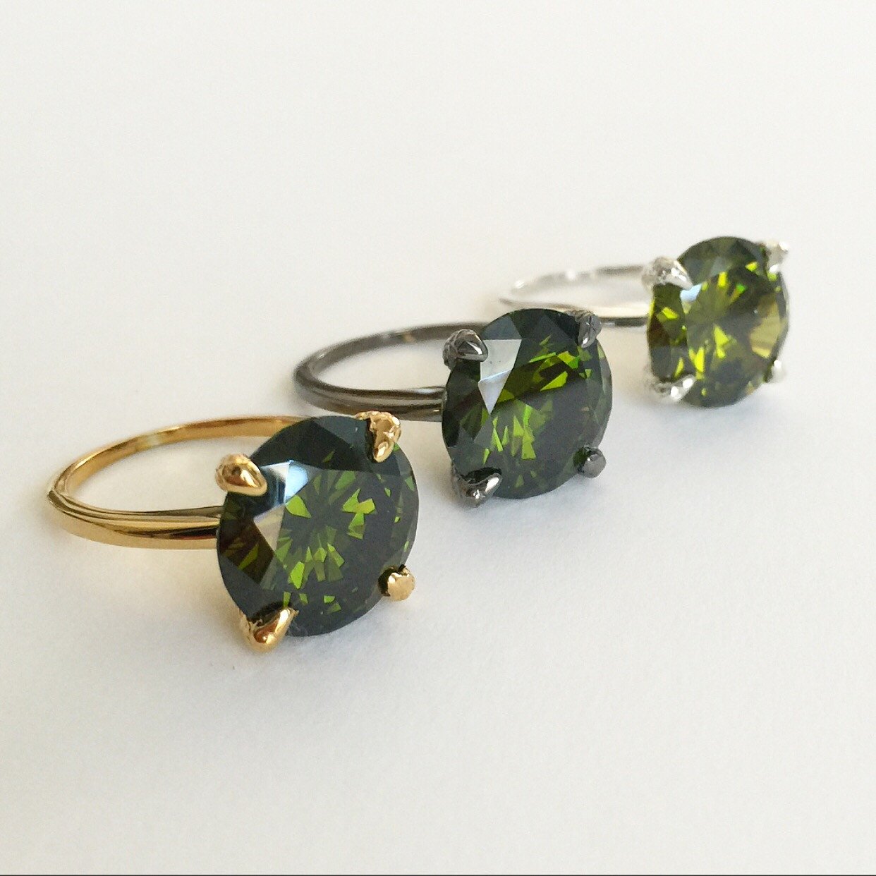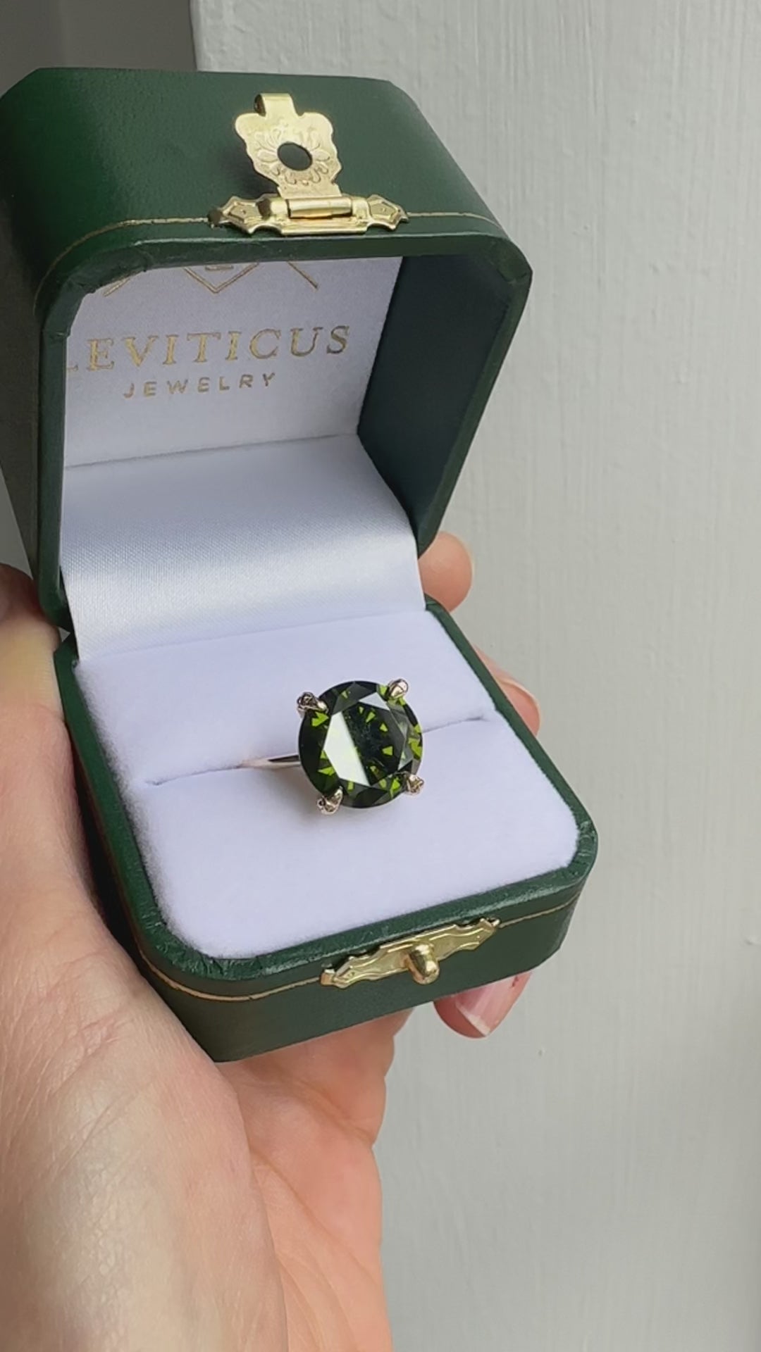 A Leviticus Jewelry original ring design. A unique and beautifully cast talon setting holding a breathtaking large olive green faceted crystal.